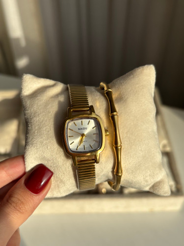 ساعت طلایی مربعی گوشه گرد