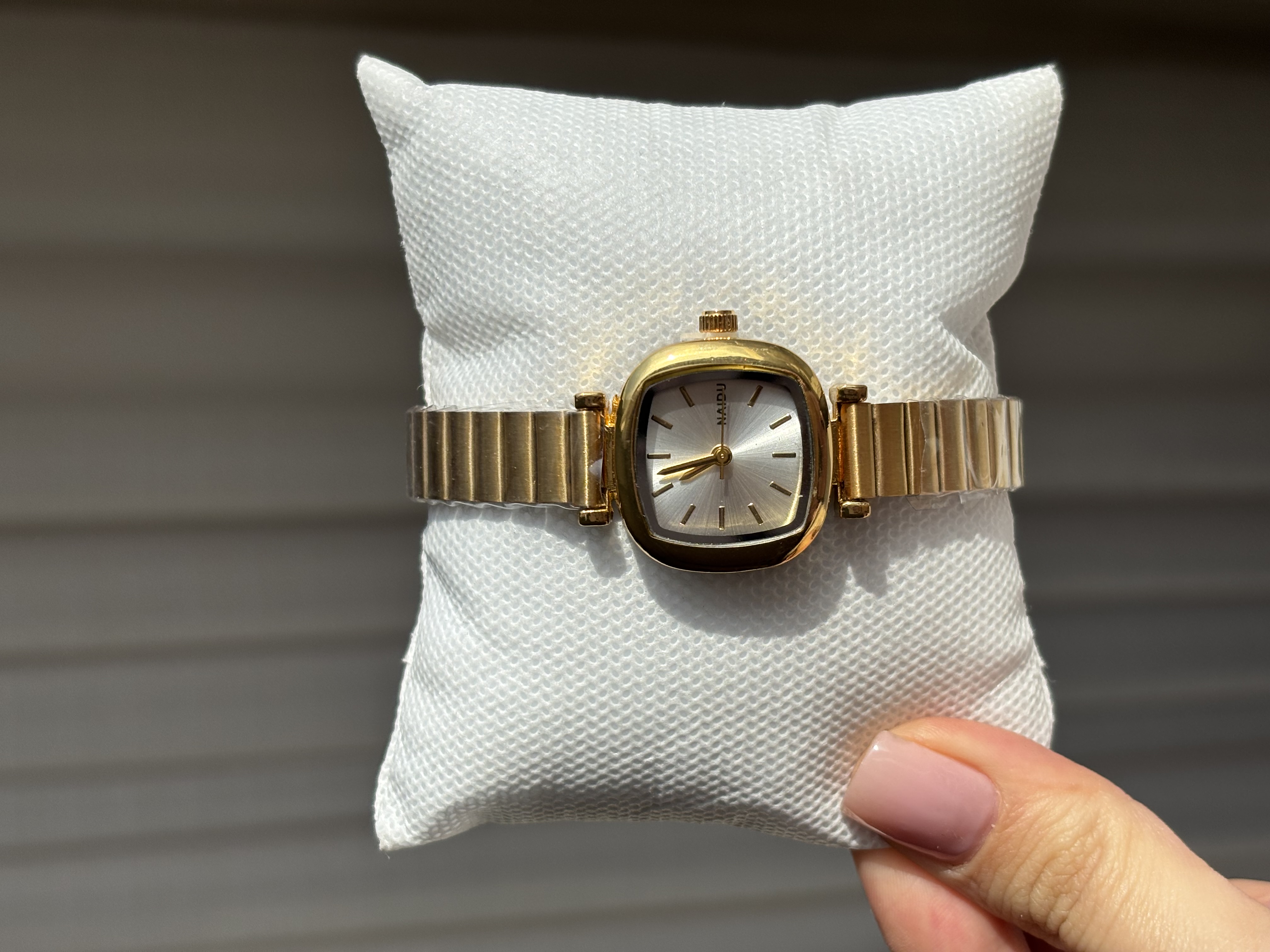 ساعت طلایی مربعی گوشه گرد