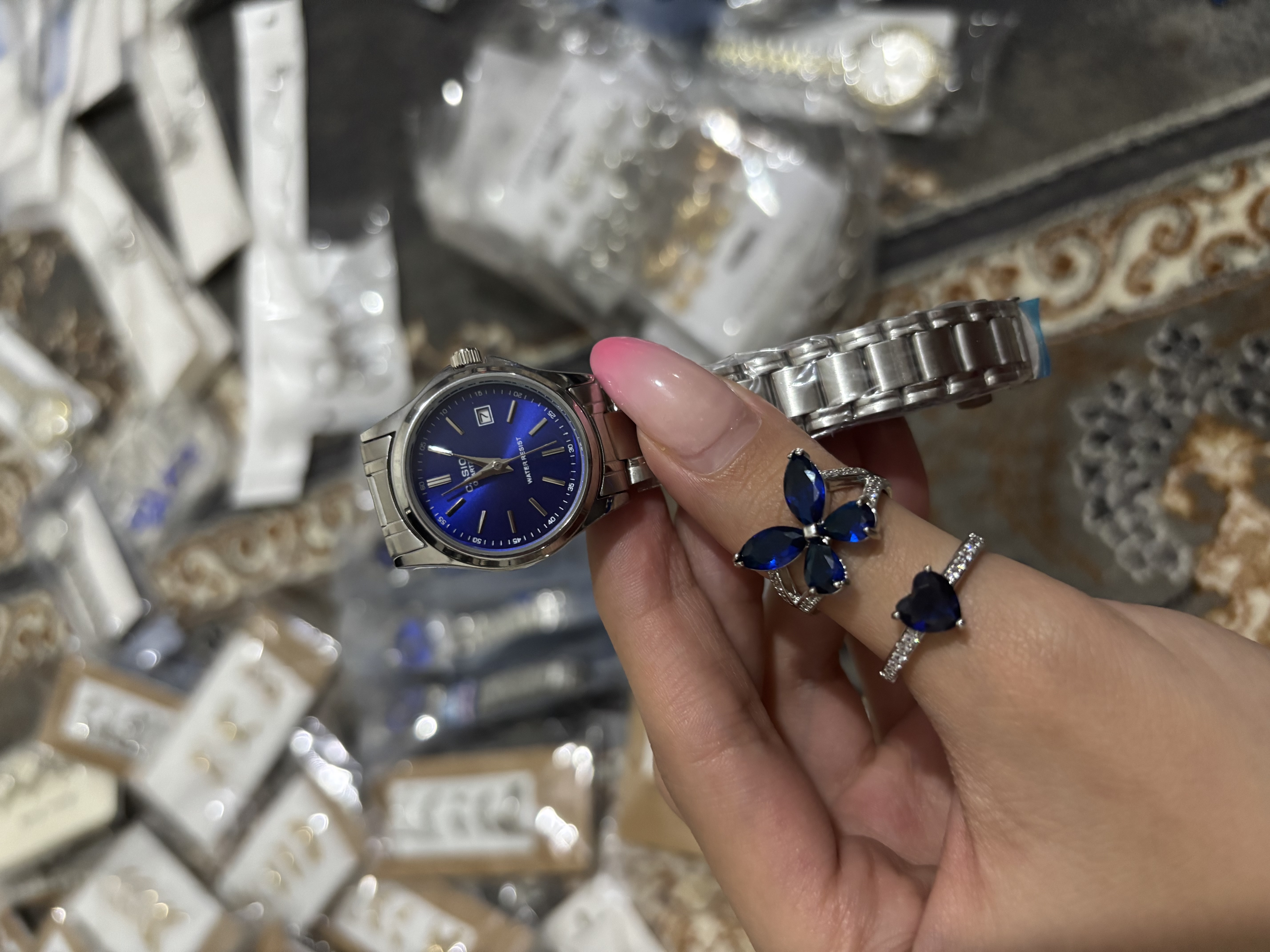 ساعت کاسیو صفحه گرد سرمه ای زنانه